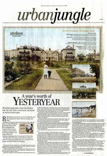 McInnes, who still has a cabin at Lake of the Woods and manages to spend about a third of the year in Manitoba, hopes to sell the 3,000 copies of the calendar, and produce a new one for 2006. "I've got enough postcards to do it for about 15 years," he says with a laugh. He' s not alone in his passion for local postcards.