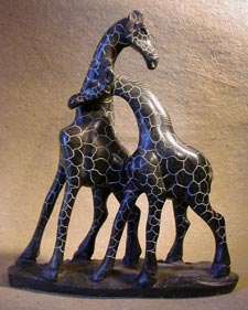 Giraffes Color: Gray black with a tinge of burgundy Sheen: On a scale of 1-5 where 1 is matte and 5 is very shiny, this sculpture would be a 3. Size: 9.5” x 8” x 2.5” Weight: 2.7 lbs (1230g) Price: $75.00