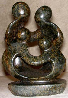 Abstract Family of Four Color: From far the sculpture looks black but upon close inspection with bright light one finds mottled bronze black and green. Sheen: On a scale of 1-5 where 1 is matte and 5 is very shiny, this family sculpture would be a 4. Size: 5.75" x 3.5" x 2”. Weight: 1.4 lbs Price: $45