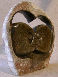 Color: . The artist contrasts the rough light grey stone with the shiny dark green with black flecked center. Sheen: On a scale of 1-5 where 1 is matte and 5 is very shiny, this sculpture would be a 3. Size: 6" x 6.25" x 1.75" Weight: 3.3 lb (1515g) Price: $45.00