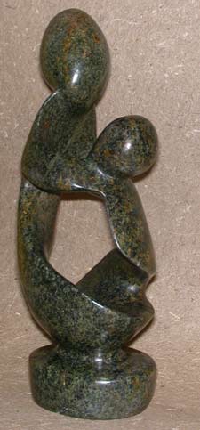 Color: This sculpture has beautiful green, black and amber mottling with